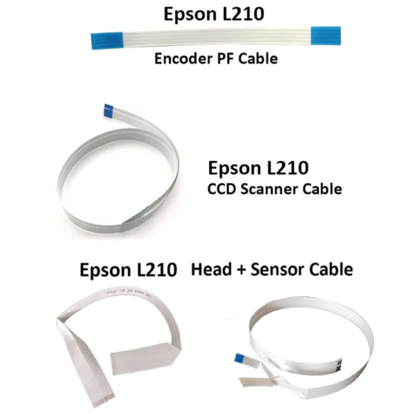 A complete internal cable set for Epson L210 printers, including 4 FFC (Flat Flexible Cable) strips of varying lengths and pin configurations to connect the control board, printhead, sensor, and scanner unit. Each cable is labeled for easy installation and tested for conductivity and durability.
