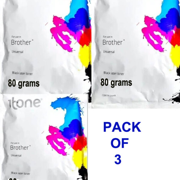 ITONE TONER POWDER FOR BROTHER LASER PRINTER 80 GRAM SET OF 3